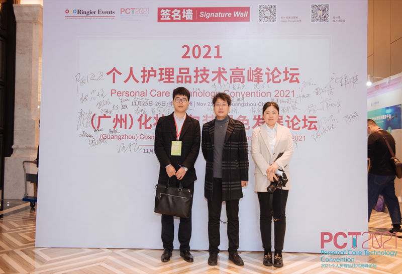 总经理薛西峰、产品经理白海沈、业务经理薛艺签到合影