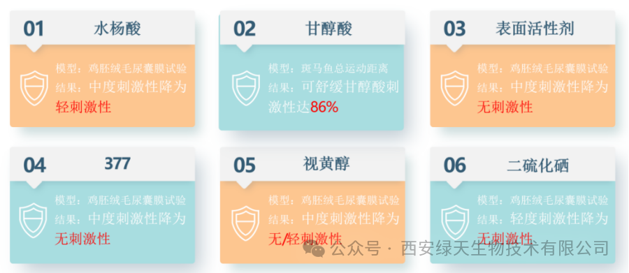 DCR®519 对主流功效成分刺激性的降低效果: