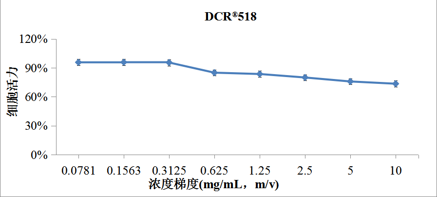 - DCR®518基于角质形成细胞进行细胞毒性试验表明,在3125mg/mL的浓度范围内未表现出明显的细胞毒性。