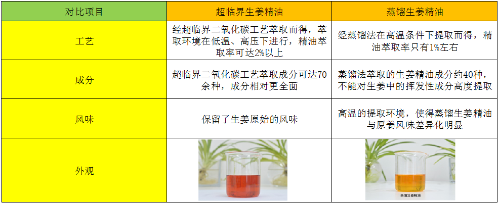 超临界二氧化碳萃取法:以高压液体作为萃取溶剂,在高压、常温的条件下,以二氧化碳为超临界流体,把姜中的姜油萃取出来,然后将携带有姜油的二氧化碳流体经过由超临界状态的相转变,从而将姜油释放出来,从而达到萃取生姜油的目的。