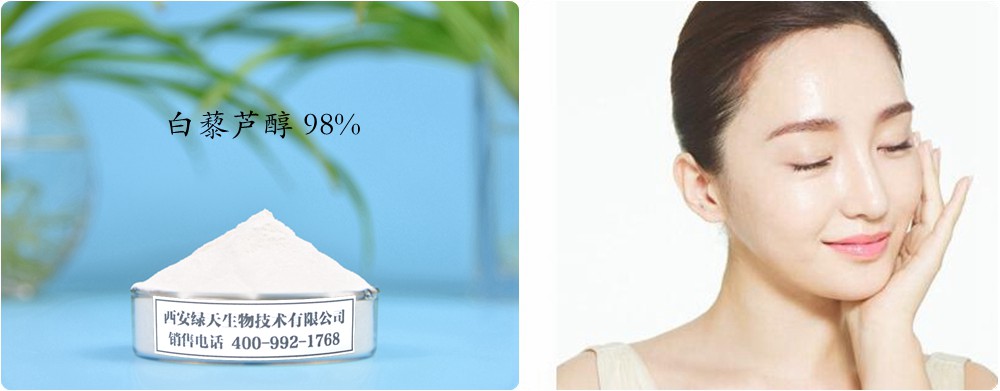 白藜芦醇(Resveratrol)是一种植物多酚,其广泛存在于自然界中,虎杖、藜芦、葡萄、花生、凤梨等植物或水果中都含有白藜芦醇。绿天公司生产的白藜芦醇以中草药植物虎杖的根茎为原料,推出了两款化妆品级别的白藜芦醇,不添加便宜的合成白藜芦醇,具有高纯度高活性的优势:10%白藜芦醇(水溶)和98%白藜芦醇(醇溶),均为白色粉末,溶解后澄清透明,无沉淀。白藜芦醇可用于多种功效型化妆品中,其在化妆品市场具有很好的应用价值。