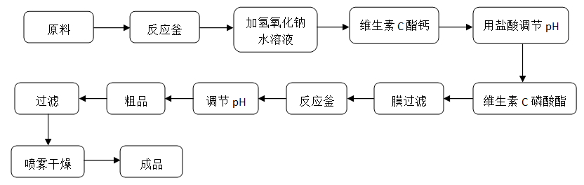 | 过程 | 将维生素C与氢氧化钠水溶液在微生物产生的酶催化作用下发生酯化反应,再经过后处理得到维生素C磷酸酯钠。 | 将维生素C的5位和6位上的羟基保护,与磷酰化试剂在吡啶与水的体系中发生磷酰化反应,酸性条件下脱除保护基,再与碱中和得到维生素C磷酸酯钠。 |