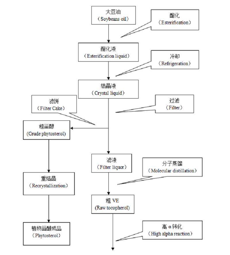 近年来,天然VE产品越来越受到人们的青睐,需求不断增大,全世界每年VE的用量约25000吨。天然VE占20%的市场份额,合成VE占80%。从原料状况来看,α-生育酚的生产原料来自天然VE。而天然VE是从天然植物原料中提取,一般是从植物油精炼脱臭时脱臭馏出物中提取。我国作为油料生产大国,目前我国花生和油菜籽产量均居世界首位,年产量分别达到1100万吨和1000万吨;大豆产量居于世界第三位,为1800万吨。西安绿天的生育酚系列产品为大豆来源天然型。