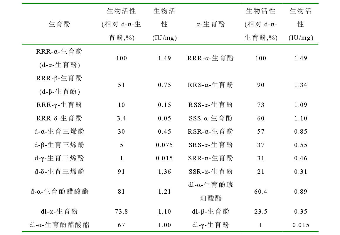 维生素E ,α-生育酚和α-生育酚醋酸酯的区别