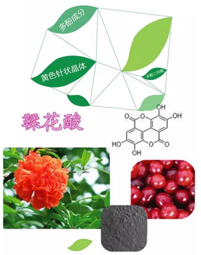 红石榴鞣花酸是医学界公认的天然有效美白成分之一,它是一种多酚类的分子,广泛存在于自然界多种植物及果实之中。